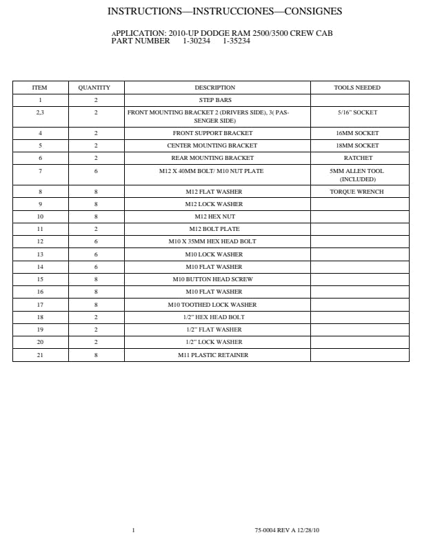This product contains two (2) nerf bars, mounting kit, and all installation hardware. Note: Because every vehicle is different, your exact Step may have certain features like bends, mounting locations, and end caps that may be slightly different than the product descriptions.