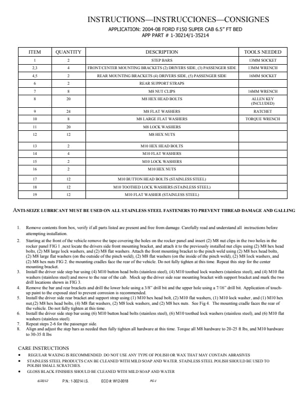 This product contains two (2) nerf bars, mounting kit, and all installation hardware. Note: Because every vehicle is different, your exact Step may have certain features like bends, mounting locations, and end caps that may be slightly different than the product descriptions.