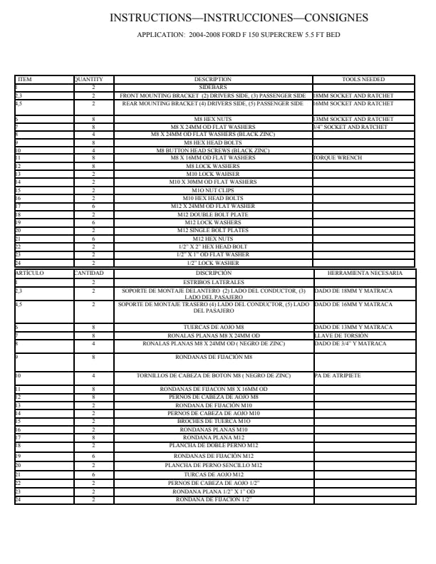 This product contains two (2) nerf bars, mounting kit, and all installation hardware. Note: Because every vehicle is different, your exact Step may have certain features like bends, mounting locations, and end caps that may be slightly different than the product descriptions.